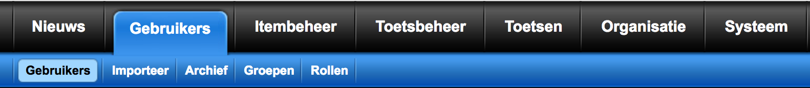 Als instellingsbeheerder, afdelingsbeheerder en docent kunt u onder het tabblad ‘Gebruikers’ enkele tabbladen terugvinden waar u gebruikers en groepen kunt beheren en importeren.